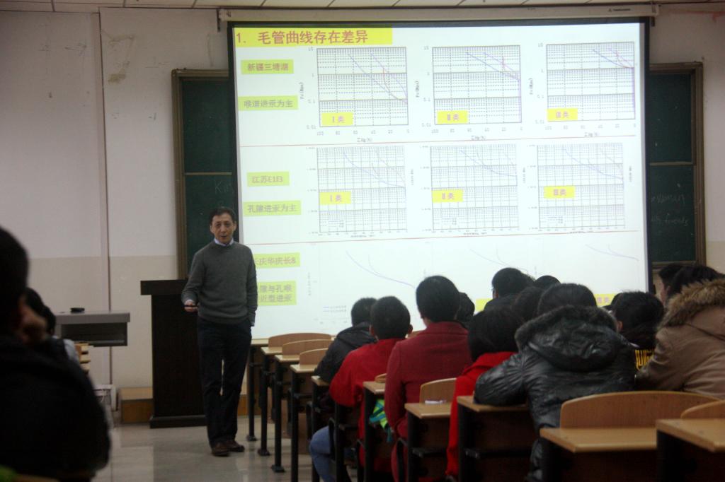 11月27日下午,应科研处和太阳集团tcy8722邀请,西北大学博士生导师孙卫教授在玉章楼第八阶梯教室为公司师生做了题为“储层微观孔隙结构及渗流特征研究进展”的学术报告。报告会由太阳集团tcy8722经理张琰图教授主持,200多名师生聆听了报告。